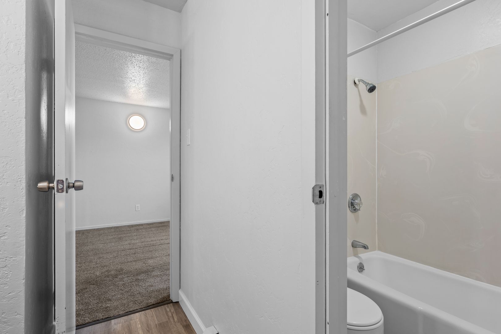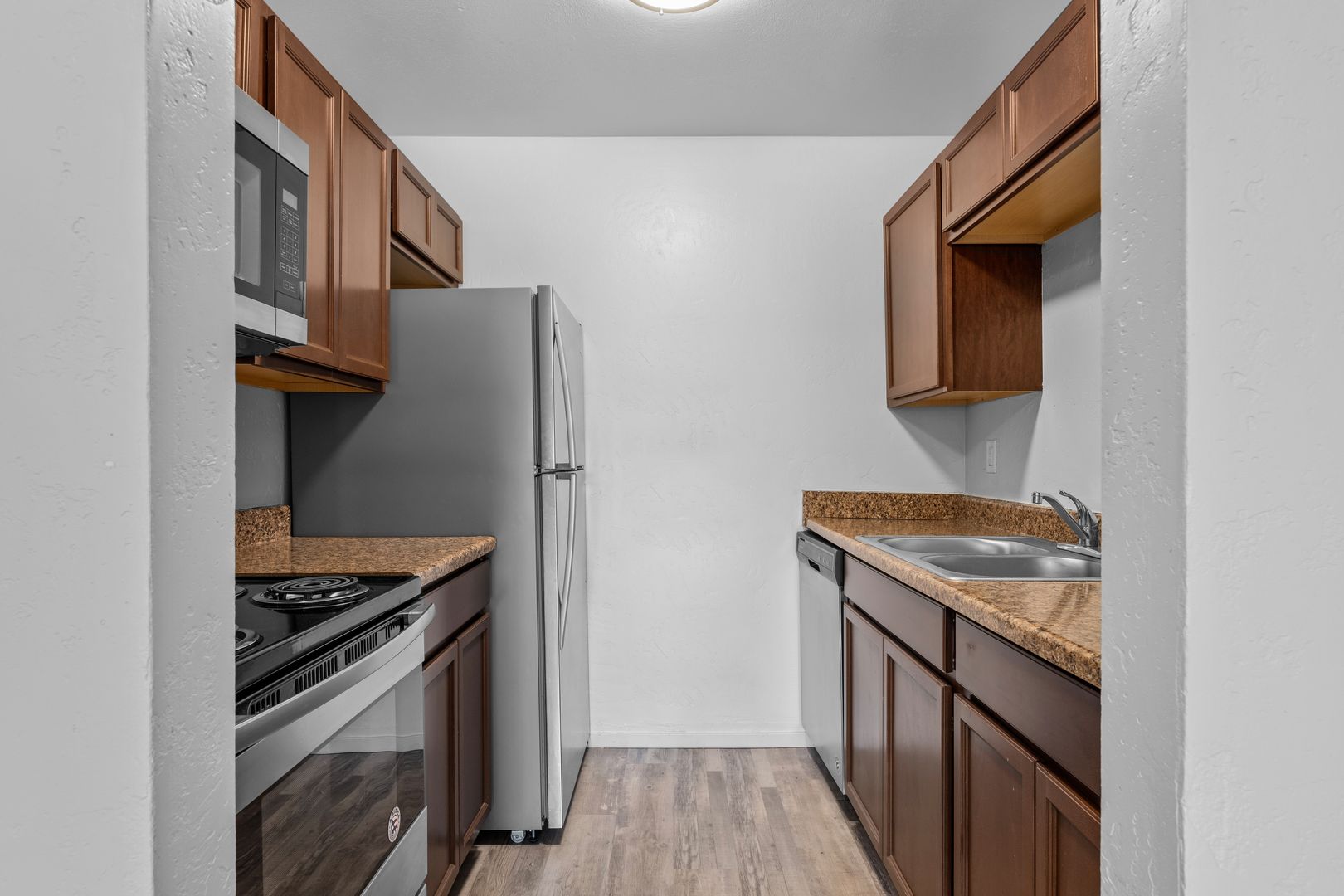 Our one bedroom apartment has a large walk-in-closet. The bathroom has a separate powder room from the bath room. The galley kitchen includes a microwave, fridge, full range, and dishwasher. There is a large bonus closet for your use.