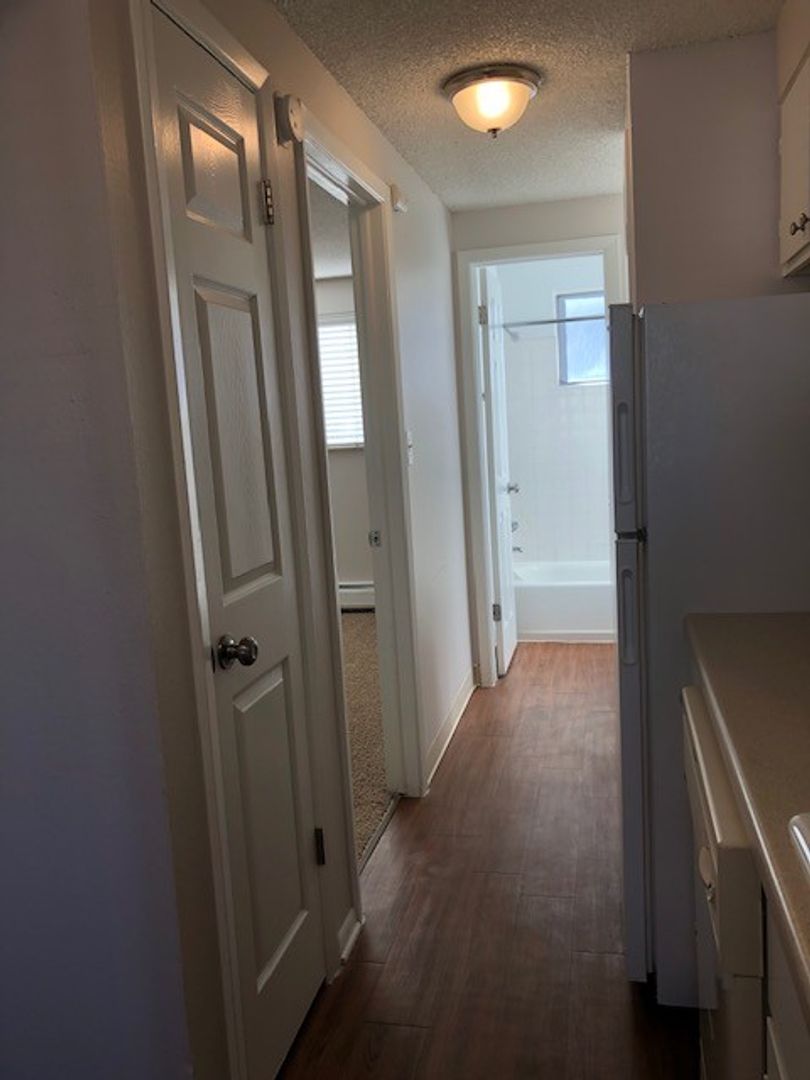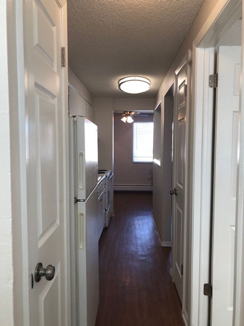 This unit also has additional closet located in the hall between the kitchen and bathroom one is a coat/mop or broom closet, the other a pantry/linen closet, do not forget the large wall to wall closet in the bedroom.